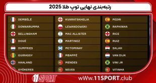 مراسم توپ طلا ۲۰۲۵ در پاریس برگزار شد و سرانجام رتبه‌بندی نهایی ۳۰ نامزد این جایزه معتبر اعلام گردید؛ عثمان دمبله با عملکرد خیره‌کننده‌اش عنوان بهترین بازیکن جهان را به دست آورد و در صدر ایستاد، در حالی که ستارگانی چون یامال، ویتینیا، صلاح و رافینیا نیز در رده‌های بالایی قرار گرفتند تا شبی پر از هیجان و تاریخ‌سازی برای …