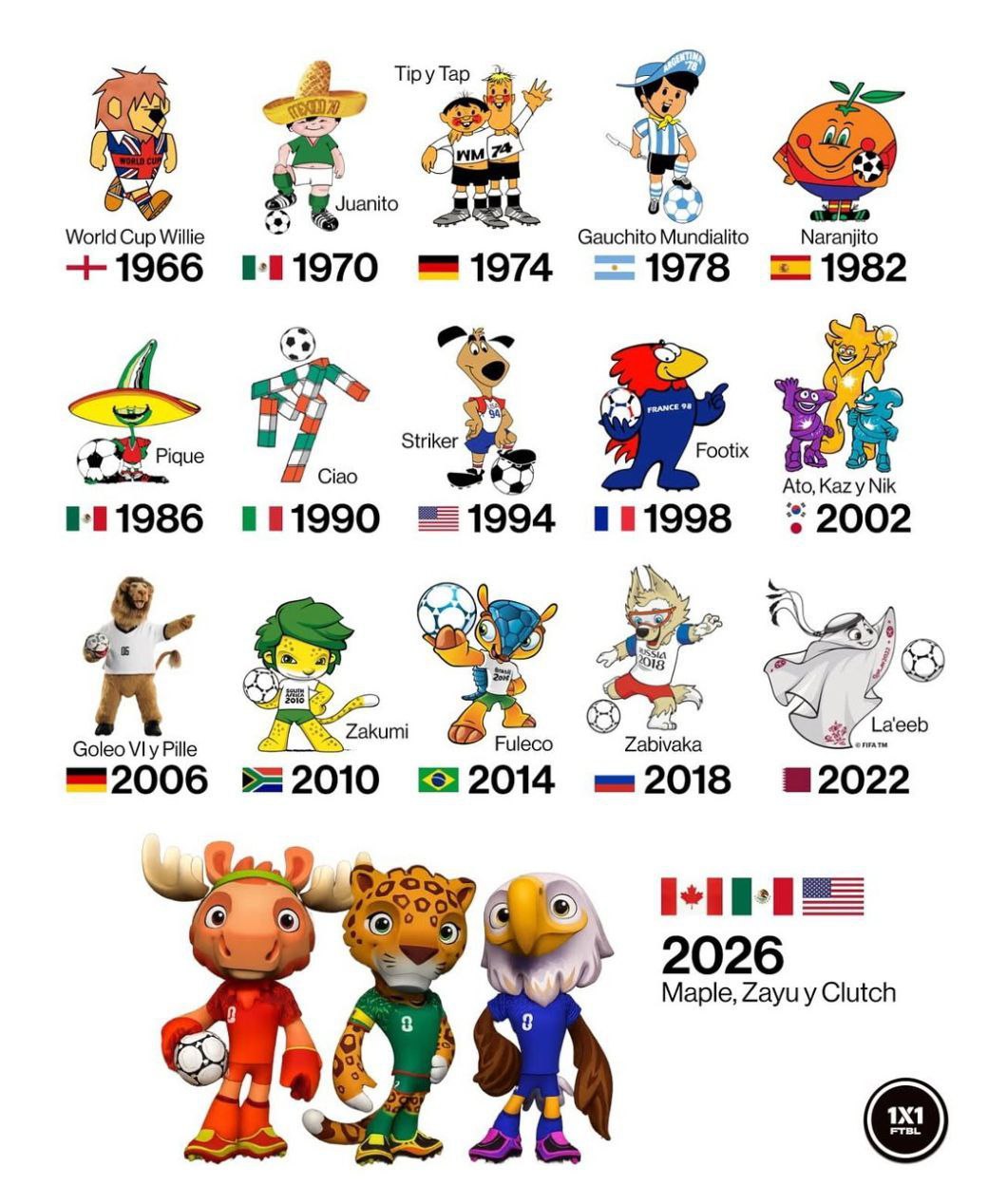 همه ماسکات های جام جهانی از 1966 تا 2026